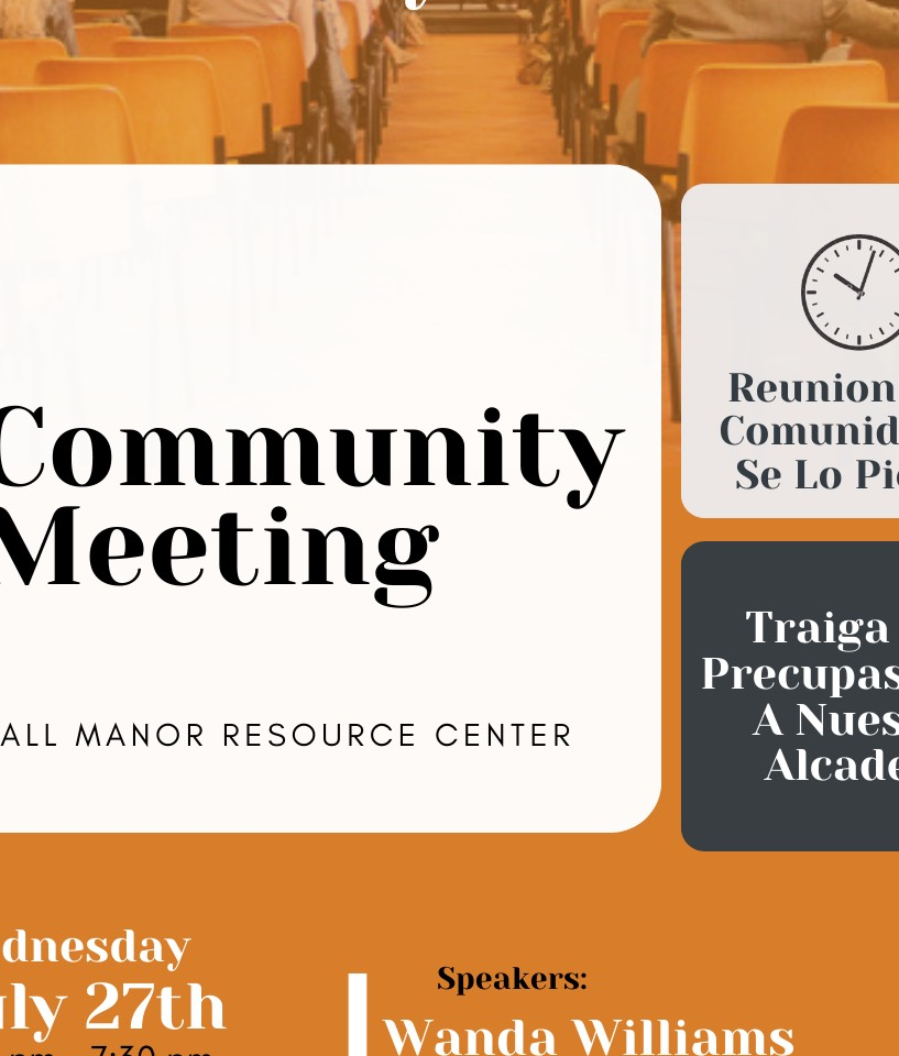 Join the conversation with Mayor Wanda Williams and The Hall Manor Tenant Association on July 27th as they discuss community issues. Also, food will be provided (on a first come first served basis, limited quantity).