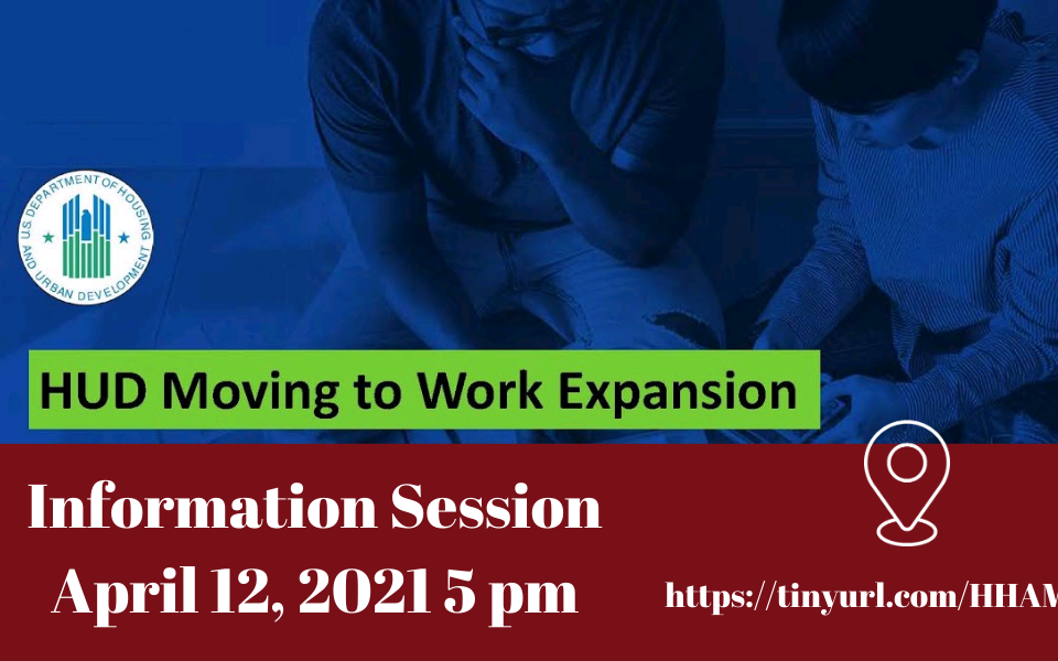 HHA is working to become a Move To work agency. Please see below how to learn more about upcoming information sessions. Log on to Zoom to join: https://tinyurl.com/HHAMTW April 12, 2021 at 5:00 PM.